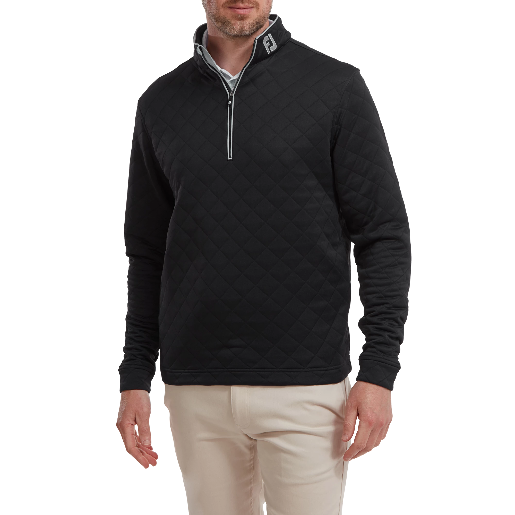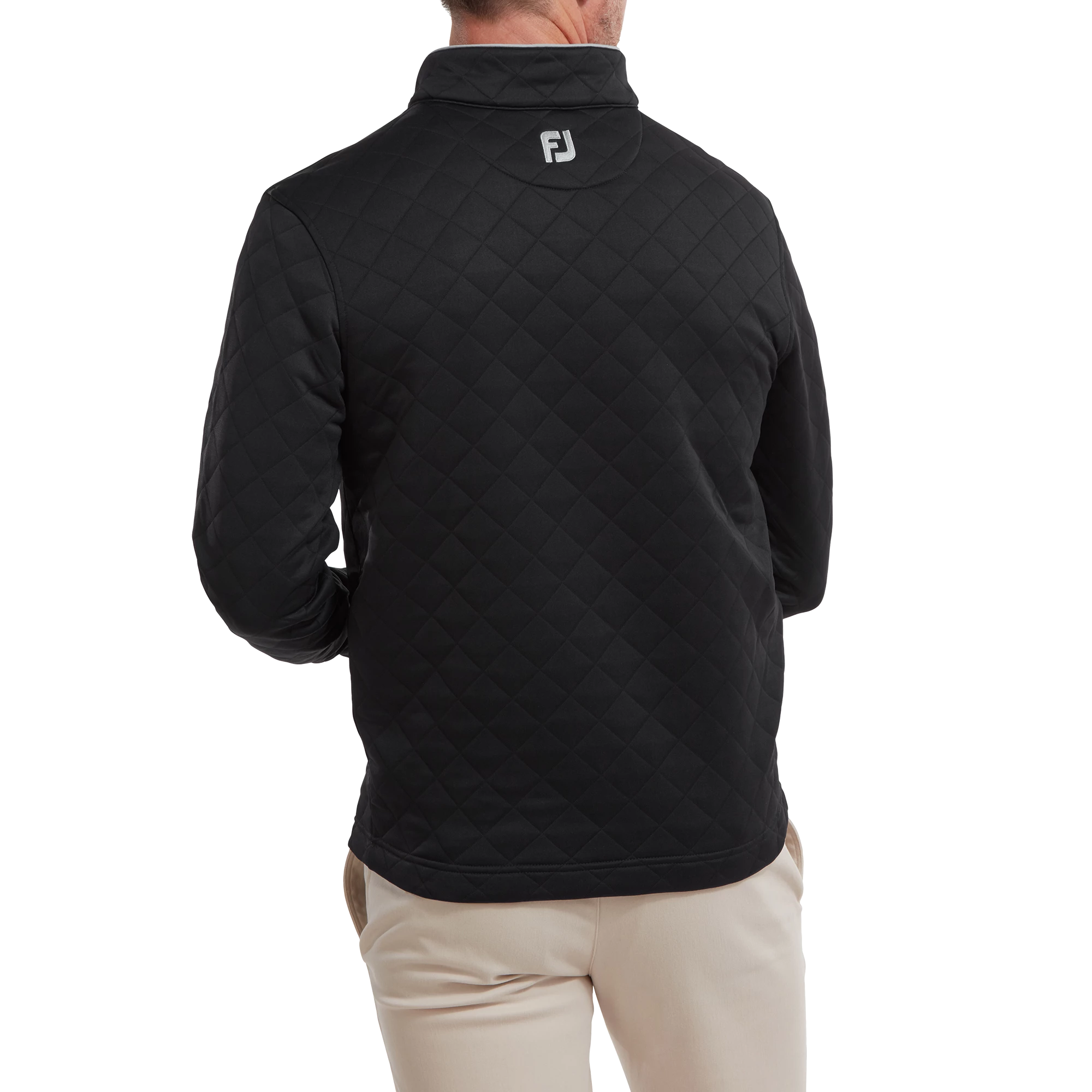 The FootJoy Diamond Quilted Chill Out Pullover is a warm midweight layering piece, this double knit sweatshirt is ideal for cool early season wear and has quilted stitching that makes it soft and warm while retaining body heat. Available in your choice of size and color options, this sweatshirt has an embroidered FJ logo on the left collar and a small embroidered logo on the back neck. It is constructed of a technical fabric that allows moisture to move freely while keeping you completely free to move within it.