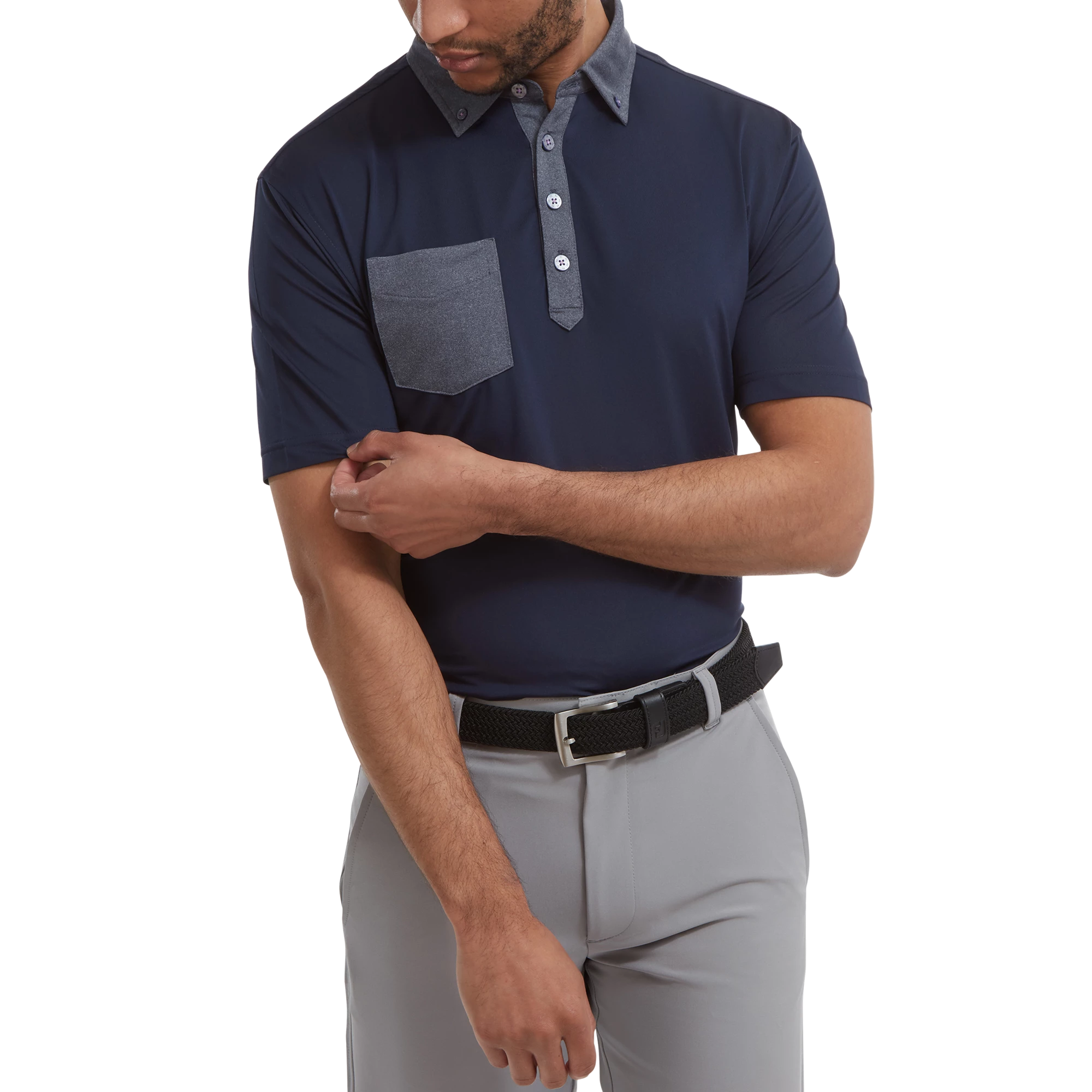 FootJoy Tonal Trim with Pocket Golf Shirt 88377 Navy