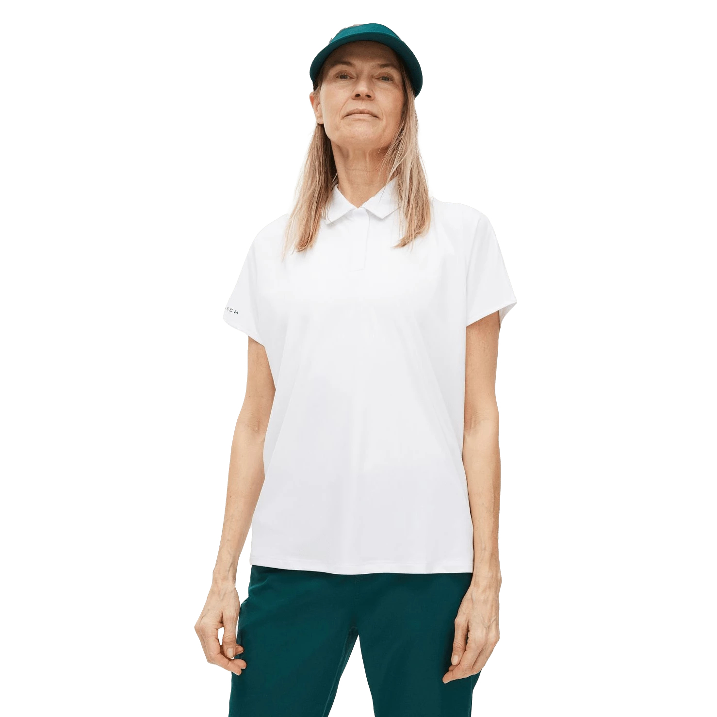 A new design for Rohnisch, the Corinne takes its influence from the Active/Gym range with a loose fit, cap-sleeve design. The Corinne Golf Polo Shirt is made of 100% recycled Polyester with a double Jersey UPF50+. This Golf Polo Shirt is an essential for Summer Golf.