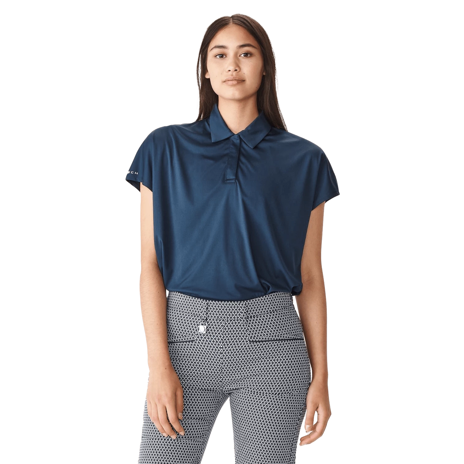 A new design for Rohnisch, the Corinne takes its influence from the Active/Gym range with a loose fit, cap-sleeve design. The Corinne Golf Polo Shirt is made of 100% recycled Polyester with a double Jersey UPF50+. This Golf Polo Shirt is an essential for Summer Golf.